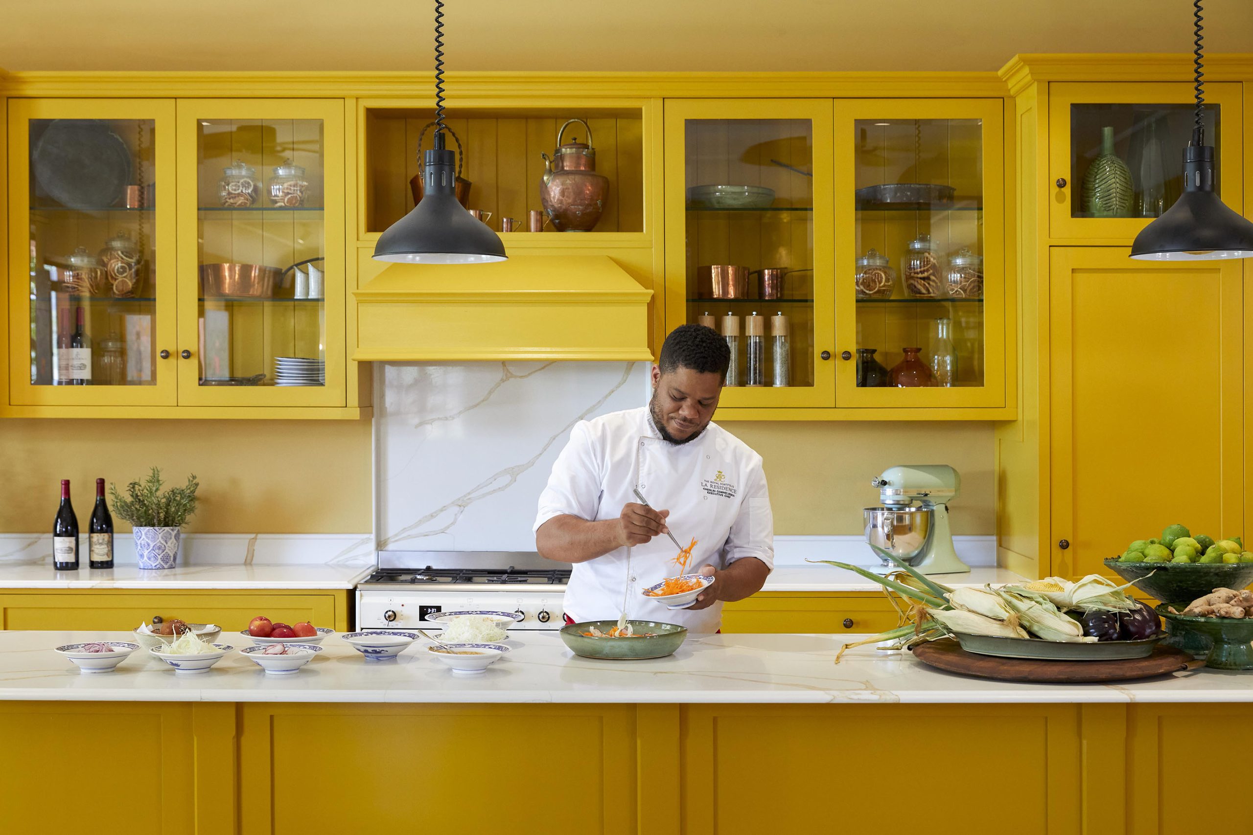 Kitchen. Here, a private chef creates farm-to-table dishes, using fresh ingredients sourced from the estate and surrounding areas.