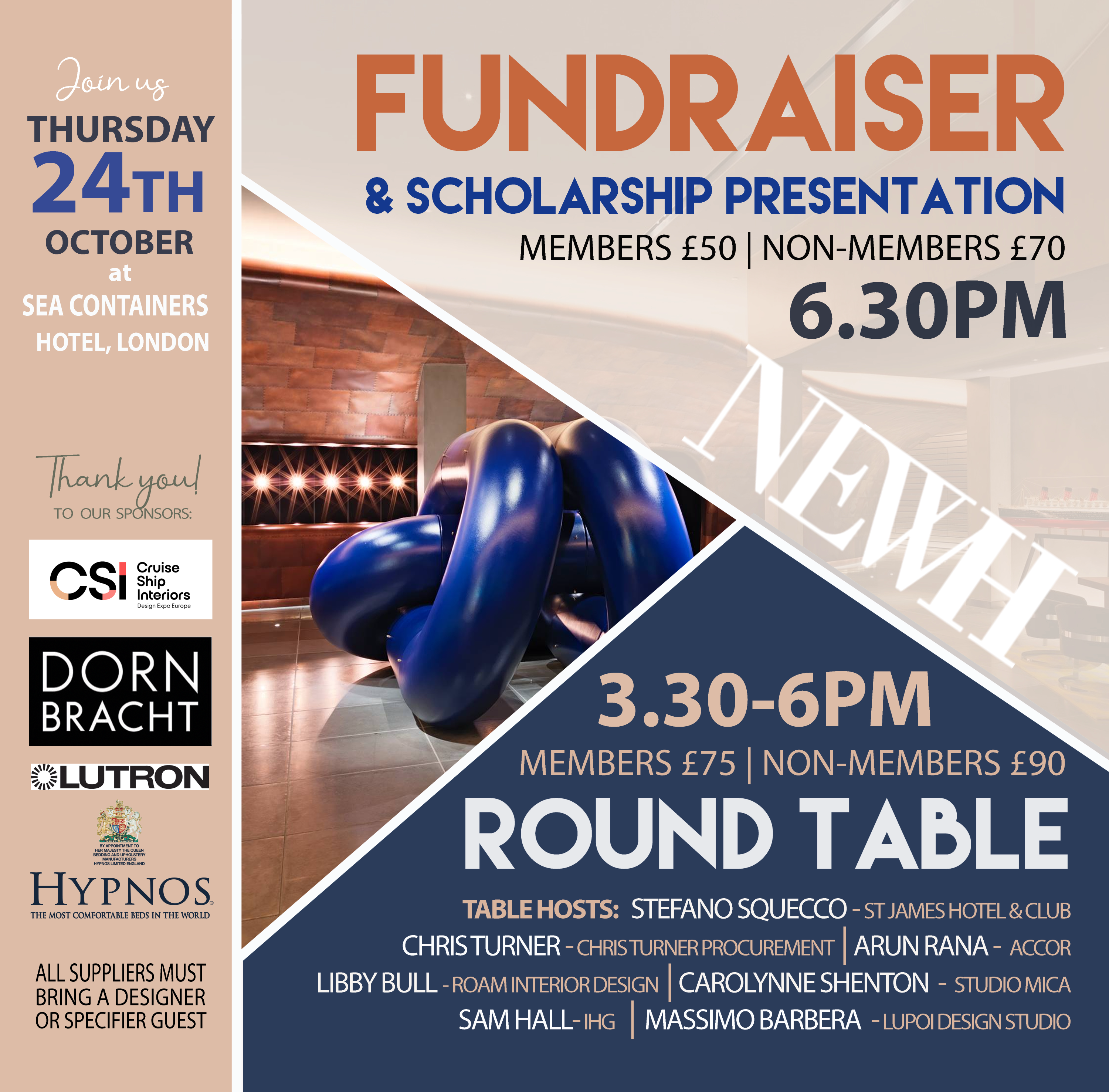 The Annual Fundraiser takes place later that evening starting at 6.30pm. This year marks the first hotel management scholarship to be awarded by NEWH UK, alongside their three customary scholarships awarded to students studying interior design.