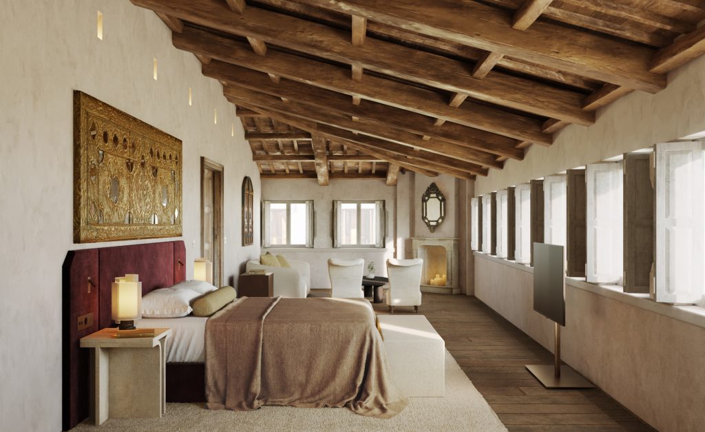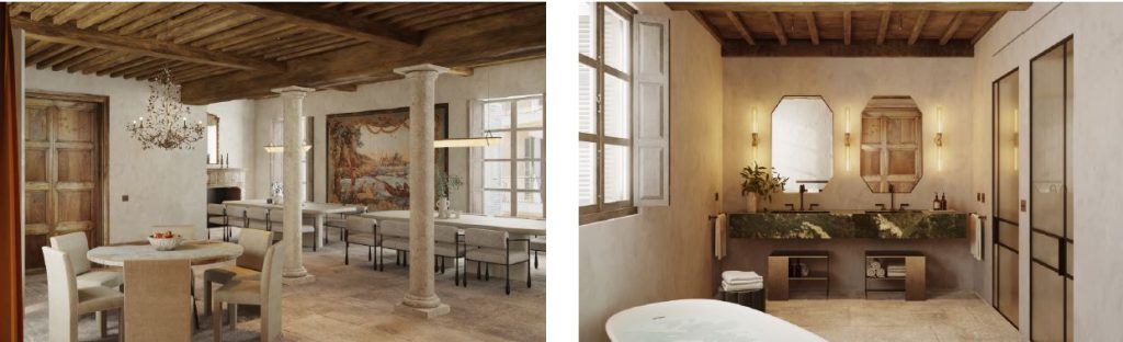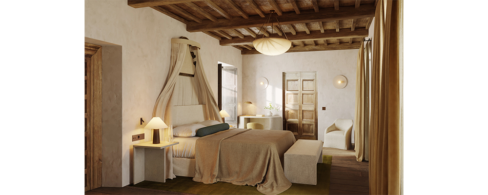 Vestige Miramar is a sea-facing mansion for private hire located in the heart of Palma de Mallorca, just steps away from the emblematic La Seu Cathedral and with its opening date set for later this year. Dating back to 12 December 1764, this historic property, formerly the home of Juan Antoni Artigues, councillor to His Majesty King Carlos III, has been meticulously restored to blend its rich heritage with modern luxury. Accommodating up to 18 guests across nine bedrooms, the mansion offers a serene retreat amidst the bustling city. Guests can enjoy a variety of communal spaces, such as a sunlit central courtyard, a sea-facing terrace ideal for alfresco dining, an indoor heated swimming pool, a state-of-the-art gym, a library, and a home cinema. The interiors combine bespoke furniture, earthy tones and textures, and local ceramics that provide a slice of authentic Mallorcan charm. Vestige Miramar’s connection to the cathedral together with its proximity to Passeig del Born, the tree-lined avenue peppered with chic boutiques and local cuisine, means Miramar has one of the most enviable locations in the island’s capital. Vestige Miramar renders available here.