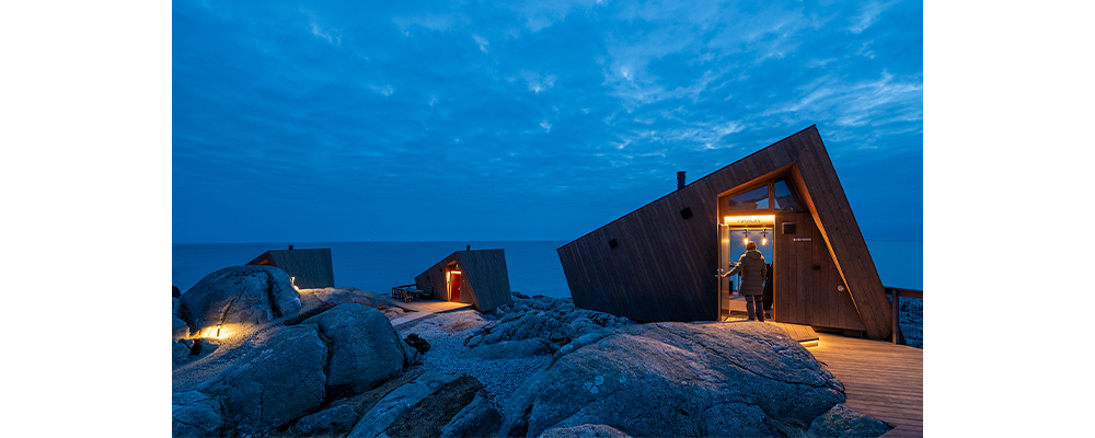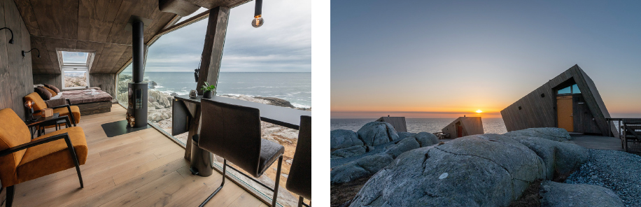 Experience some of the best that Western Norway has to offer; fresh, wild and beautiful nature. Panoramahyttene gives you the opportunity to get close to the coastal landscape, with high skies and wide-open horizons, and constantly changing weather, wind and light. The experience changes with the weather: from stormy days when the waves crash against the rocks, to calm days when the sunset is reflected in the sea.