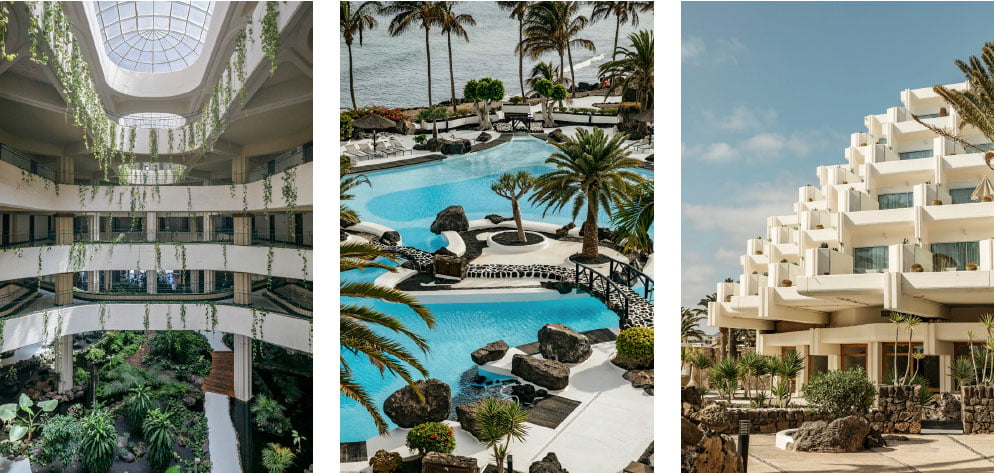 Designed by Fernando Higueras and César Manrique, the building combines rationalist architecture by Higueras with murals, pool and garden design by the Canarian artist and painter.
