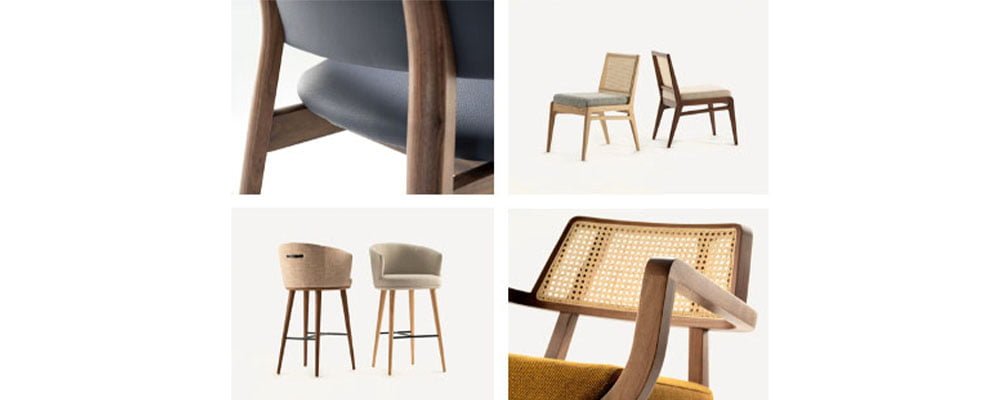 After a successful digital launch, the Kaya Dining collection will also be available for visitors to view in person for the first time. Including the increasingly popular woven cane detail this collection is tactile, warm, and relinks contemporary design to traditional artisanal techniques. The collection has an emphasis on space and light, evoking an atmosphere of ‘komorebi’, the Japanese word for the sunshine filtering through leaves. As with a lush woodland, Kaya’s serene frame finds strength in numbers. Individual timber sections have been kept small with multiple lightweight supports in place of a single, larger component.