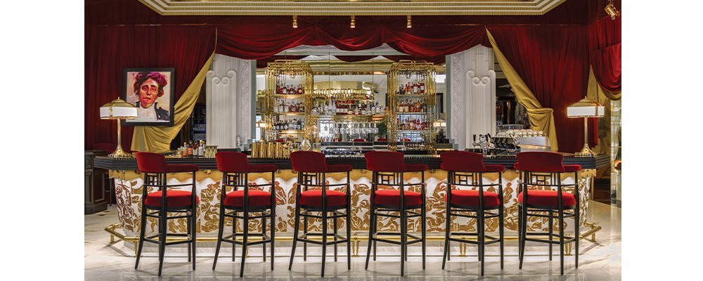 The hotel’s signature restaurant, Backstage, just off the Lobby – as its’ name hints, presents a dramatic backdrop of theatrical costumes and vintage tableware, as talented chefs craft exceptional cuisine, including vegan dishes and northern Vietnamese-inspired specialties that fuse locally sourced produce and contemporary cooking techniques. Bill personally collected vintage gowns, wooden shoe moulds and fantastic trunks for this brasserie, where he imagines actors might have met before or after a show. The artwork was designed in collaboration with William Barrington Binns a series of essential antique accessories for actresses and actors, all shot in pink, whilst the tableware was designed in collaboration with Kate Spencer.