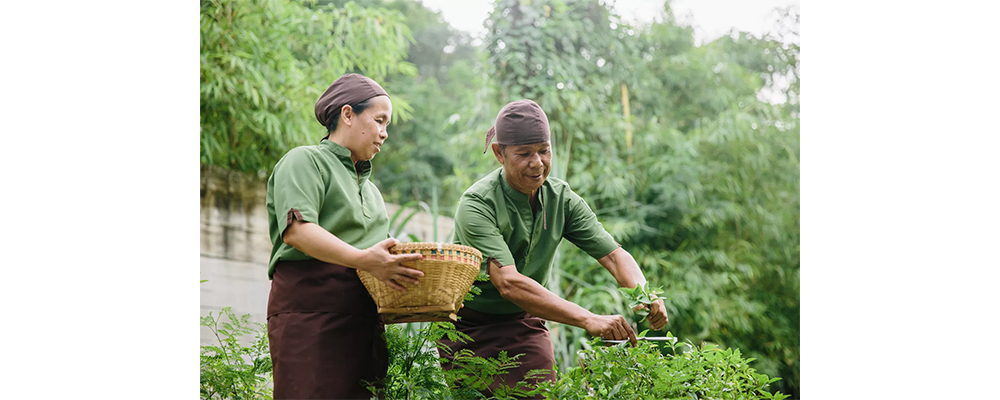 The resort was one of Thailand’s first to earn LEED Gold Certification and today houses the largest solar energy system of any property in Phuket, as well as comprehensive recycling and wastewater treatment plants. Its culinary program is an exemplar of how gastronomy can be used as a tool to protect precious resources while also championing indigenous practices. Its signature restaurant Ta Khai, which is targeted to transform as a business with purpose by end of 2024, is helmed by local couple Uncle Nun and Aunt Yai and sources 100% of ingredients locally, with many coming from Ta Khai’s own organic herb and vegetable garden.