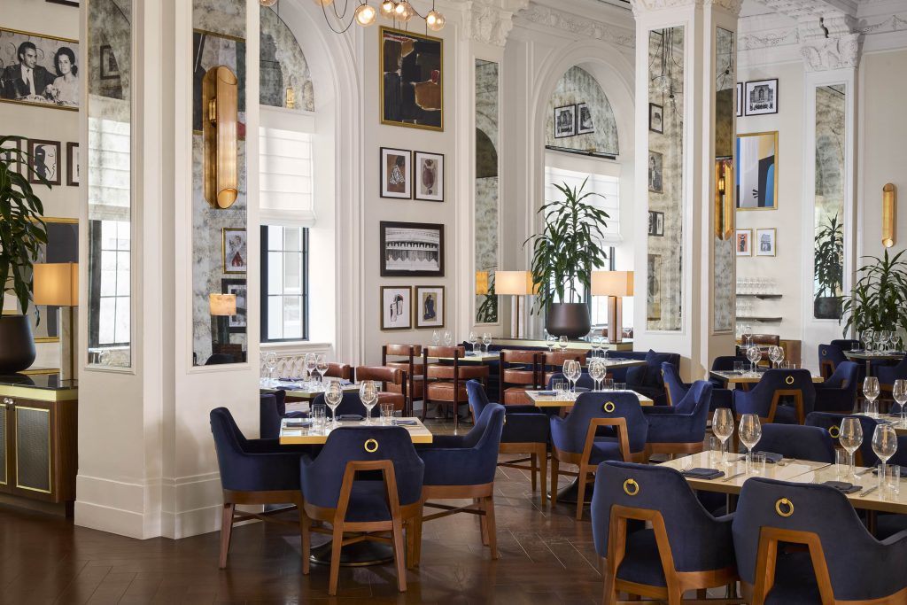 Nettuno restaurants’ soaring ceilings and refined proportions create a backdrop for gallery walls of artwork