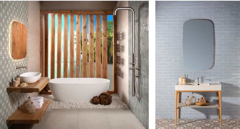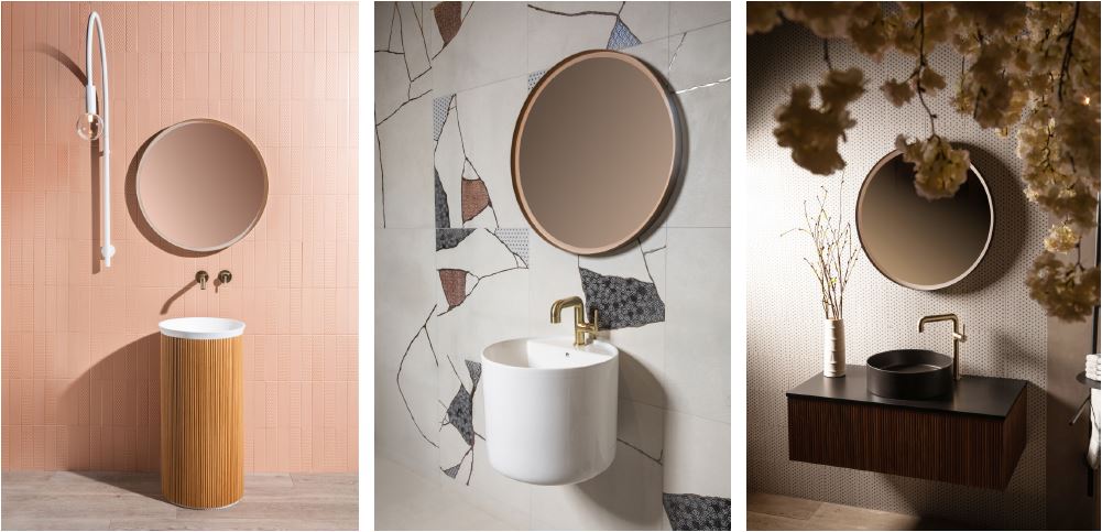BAGNODESIGN launches two new bathroom collections offering complete solutions. Nara, inspired by Japandi design, features basins, BAGNOQUARTZ bathtubs, furniture, accessories, mirrors and lighting. Beach House embodies tropical luxury living with 316 stainless steel outdoor shower columns, natural wood furniture, stone composite BAGNOQUARTZ basins and bathtubs, brassware and accessories. Also introduced will be new PVD finishes that answer the trend for warm-toned metallic brassware: opulent Oyster and distinctive Soft Burgundy.