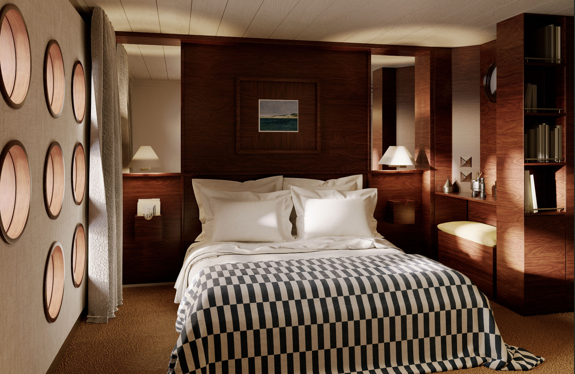 Inspired by nature and created to feel like home, the ship will house a variety of areas including 19 cabins, all with a view on the horizon, as well as a restaurant and a library for adventurers to enjoy during their stay. The interior spaces are being designed by Franco-Swedish designer, Joséphine Fossey, who carefully selected each element to create minimalist and refined havens of peace, emphasising sustainable materials. The rooftop sailing deck will be open for passengers, giving a panoramic view as well as an access to a green powered sauna and polar cold tub.