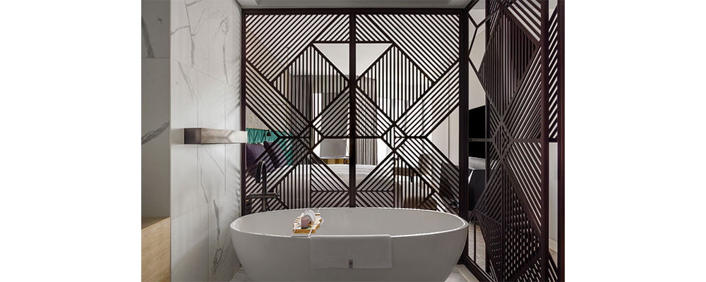 Dramatically wrapped in striking patterns and radiant colours, the fashion-forward hotel’s lobby artwork has been designed and executed by APL and Capsule Arts. From the enchantment of nature in a kaleidoscopic experience at the lobby, setting the tone for a unique and spellbinding stay, to contemporary nuances of simulations and sculptures against geometric lines, SO/ Uptown Dubai worked with Dubai-based architecture studio, Woods Bagot, to complete every aspect of the dynamic design which is imbued by luxury, sophistication, a premium way of style, and passion bringing your fashion flavour.
