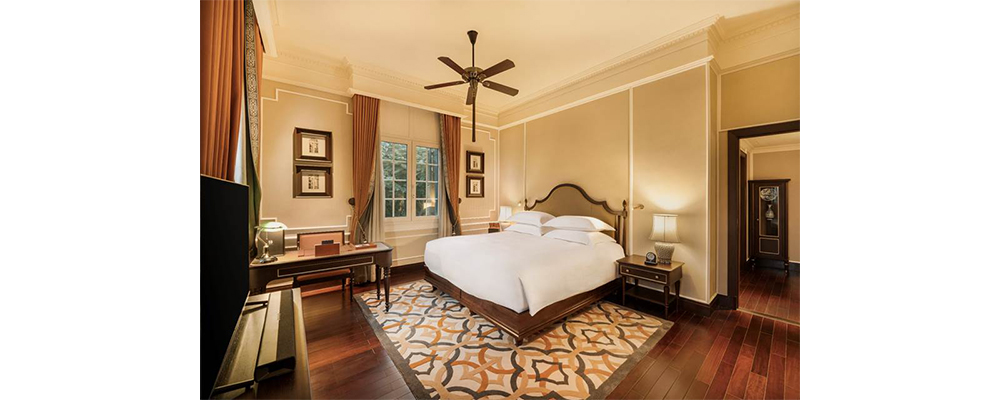 The updated interior design of the lobby and guest rooms in the Heritage Wing was completed by the Singapore-based David Grace Designs International.