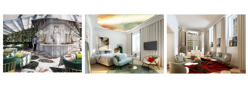 Jean Philippe Nuel’s chic redesigns will combine the heritage and classicism of ‘La Dolce Vita’, with the modernism and design of French ‘art de vivre’. The hotel entrance will feature an iconic display of chromatic counterpoints and vibrant colours, creating a modern lounge with a classical feel. Guest rooms will also exhibit an iridescent ceiling masterpiece, creating the illusion of the bright sky above.