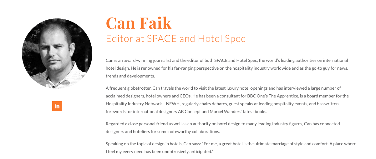 This year, we are proud to announce that SPACE and Hotel Spec editor; Can Faik will be joining a number of high profile speakers, panelists and presenters to host a talk at the London event.