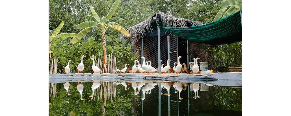 In addition to ducks and chickens, the farm is home to an abundance of geese, rabbits, goats, guinea fowls, turkeys and peacocks and their offspring.