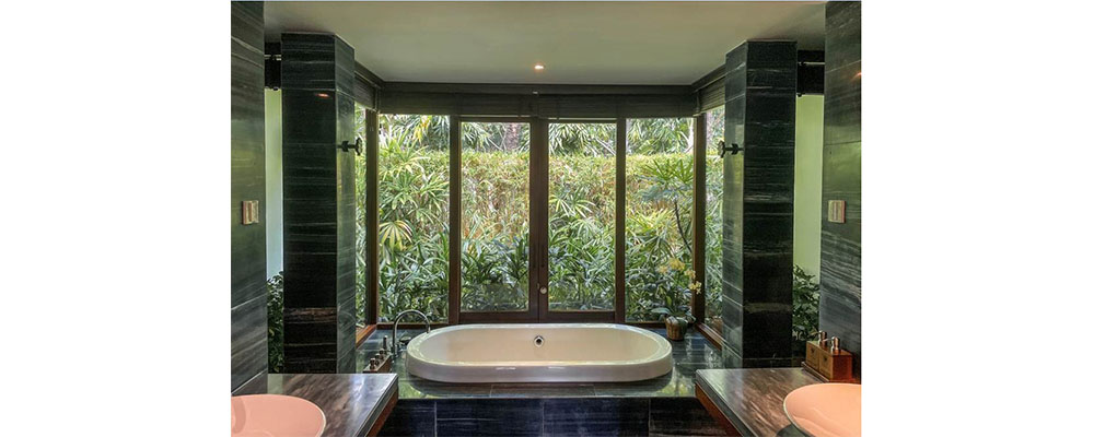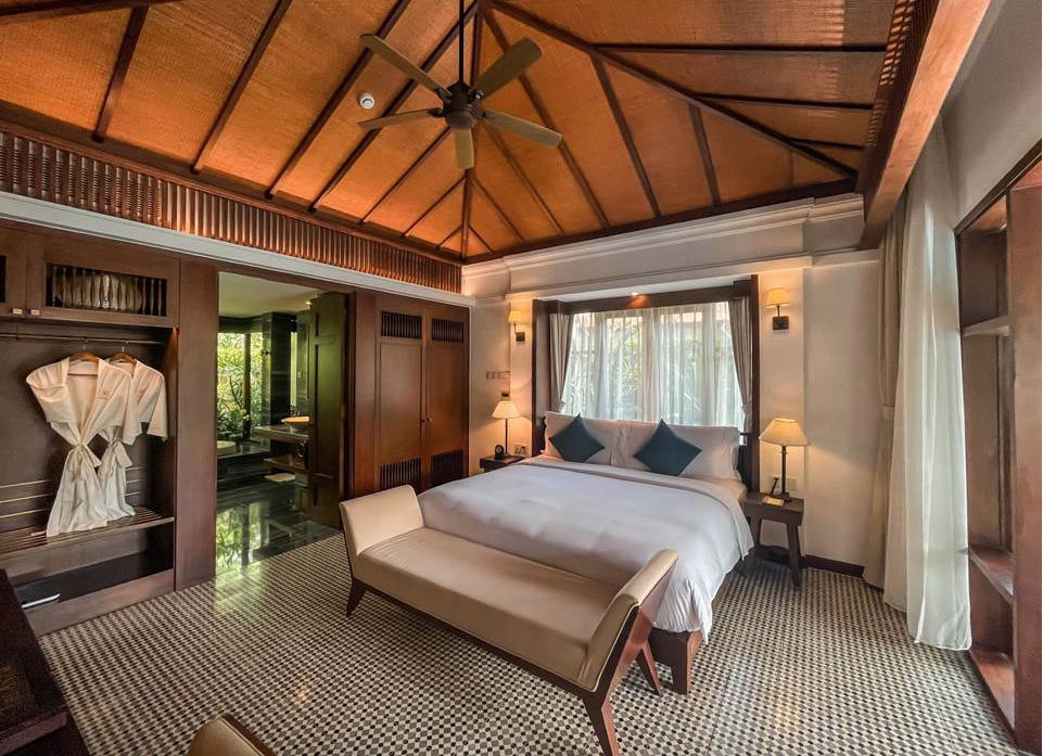 The villas also afford easy access to The Anam Spa and its facilities including its sensory garden, beauty salon, reflexology path, and yoga studio. The sensory garden features water fountains in reflecting ponds, Instagram-worthy seating areas including swing chairs and a herb garden brimming with the likes of rosemary, mint, lemongrass and aloe vera. The 16-metre-long reflexology path, designed to lower blood pressure, stimulate reflex points, relieve stress and boost energy, winds its way through the lush garden totalling 179sqm. The yoga studio opens at the crack of dawn and offers private yoga with resident yogi Umesh.