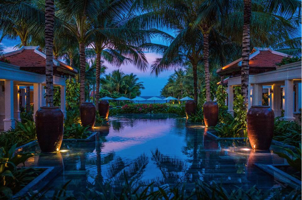 The Anam Cam Ranh overlooks 300 metres of beachfront on Vietnam’s scenic Cam Ranh peninsula, which averages more than 300 sunny days per year. The luxurious five-star resort boasts 77 villas and 136 rooms and suites. The Anam Cam Ranh features a French-inspired fine dining restaurant, all-day dining restaurant, a Vietnamese restaurant and bar, a classical bar, a beach club, in-room dining, a 10 treatment-room spa, indoor and outdoor movie theatres, three capacious swimming pools, ballroom, conference rooms, recreation and fitness centre, a tennis court, yoga room and deck, kids club, putting green, gift shop and more.