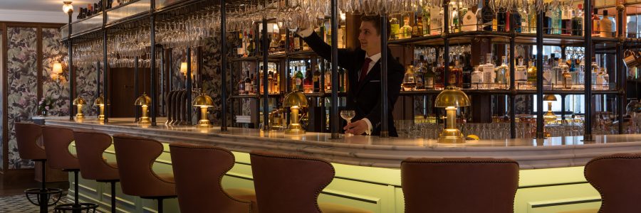 The new brasserie offers a fresh colour palette of soft blues, green hues and blush pink tones which complement the high gloss lacquer and timber panelled walls. Staying true to the brasserie’s location, Martin Brudnizki has selected materials synonymous with Scotland: timber, soft leather and wool. Antique mirror and brass detailing ensures light is created within the space. A variety of seating options, including traditional banquettes and leather upholstered dining chairs, add to the feeling of comfort, warmth and conviviality; Martin Brudnizki has designed the brasserie with friends and family in mind. An adjoining bar and lounge area, a destination in its own right, offers beautifully and simply prepared classic cocktails and a food menu of French snacks and sharing platters, also created by Alain Roux. Guests can enjoy a pre-dinner aperitif, sit in the cosy library by the fire for an after dinner drink or sample a few cocktails at the long, marble bar counter for a fun night out. The ambience of Brasserie Prince by Alain Roux is relaxed yet convivial whilst offering delicious food using only the highest quality ingredients and warm, efficient service.