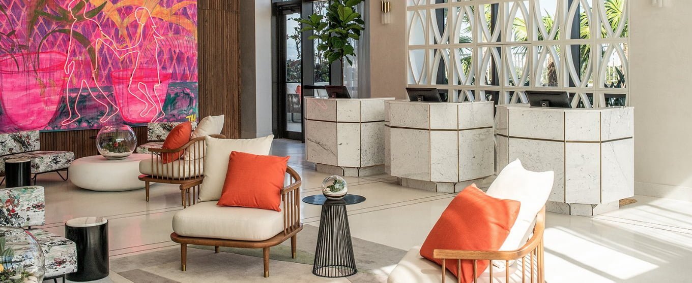 Inspired by the vibrant culture of South Florida, blended with a distinctively California mid-century vibe, The Dalmar offers guests a uniquely relaxed and tropical environment in an exciting downtown location. The hotel’s public areas express a fresh and playful character through their layering of textures and finishes, vibrant jewel tone colours and dynamic contemporary art. Capitalising on the natural beauty of Fort Lauderdale, the hotel’s indoor-outdoor design offers visitors an authentic downtown experience with ocean views.