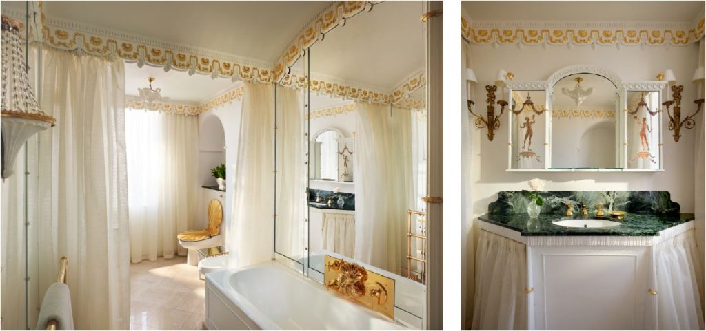 At the same time, the suite has been discreetly updated to reflect today’s way of life at The Dorchester. Contemporary elements have been integrated with precision and ease: a Bang & Olufsen television is concealed behind a retractable panel printed with a Messel illustration, preserving the atmosphere while quietly delivering modern comfort.