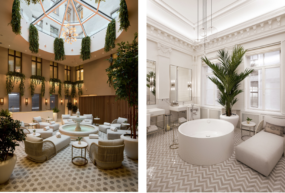 The Hotel Maria is committed to holistic wellbeing, exemplified by the on-site spa, Maria Spa. It features a large coed Finnish sauna, a uniquely designed steam room, cold and warm water plunge pools, Jacuzzi, and a greenery-filled fully enclosed atrium sanctuary with Spa Bar. Indulgent signature skin and body treatments, such as the Luminizer Massage, Arctic Healing with Maria and Nordic Vitality Facial, take place in four treatment rooms with luxury products from the exclusive Biologique Recherche range. The Maria Spa is opening in December 2023 and the wellness options will expand further in June 2024 by the opening of The Wellness Club, which will offer a design forward fitness space with best-in-class equipment and unique training programs for guests and locals alike.
