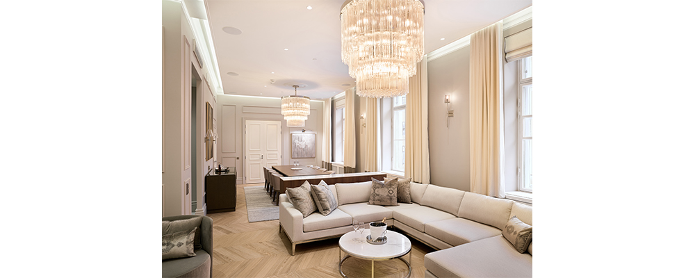 The Hotel Maria is a collection of four architecturally and historically prominent buildings dating back to 1885, protected by The Finnish Heritage Agency. The design concept gracefully balances stately, historic architecture with refined modern furnishings, elevating the definition of modern luxury in Helsinki. With interiors by Head Designer Jana Sasko and Puroplan, one of Finland’s leading interior design firms, The Hotel Maria strikingly blends Finnish culture with American style and extra spacious standards. Many of the site’s original features are celebrated throughout the design, with traditional ornate wall and ceiling details dressed in fresh shades of white and neutral, creating a cohesive and timeless backdrop for the overall aesthetic. Into this crisp envelope, the design layers an array of supple textures, accented with natural woods and hand-forged metals, all crowned with an eclectic, extensive collection of contemporary lighting.