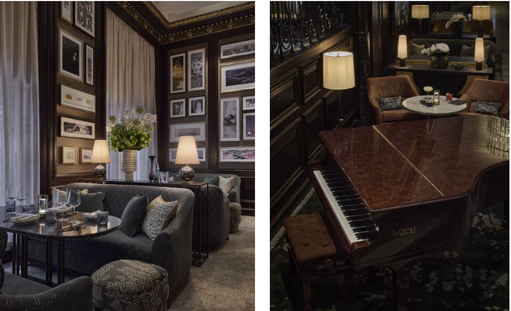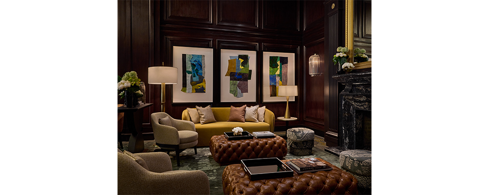 Embodying the spirit of the gilded art deco era, The Georgia Bar is the hotel’s new mixology-focused concept, centered around a dramatic, u-shaped Arabescatto Orobico marble-top bar with a backdrop of stately mahogany-paneled walls and marble checkerboard floors. Cocooning guests are bespoke, custom furnishings produced by artisan makers in Europe outfitted in soft upholsteries of crushed velvets and rich leather, ornate crystal fixtures, unique archival objects, and an eclectic art collection, all infusing the ambiance with both elegance and character.