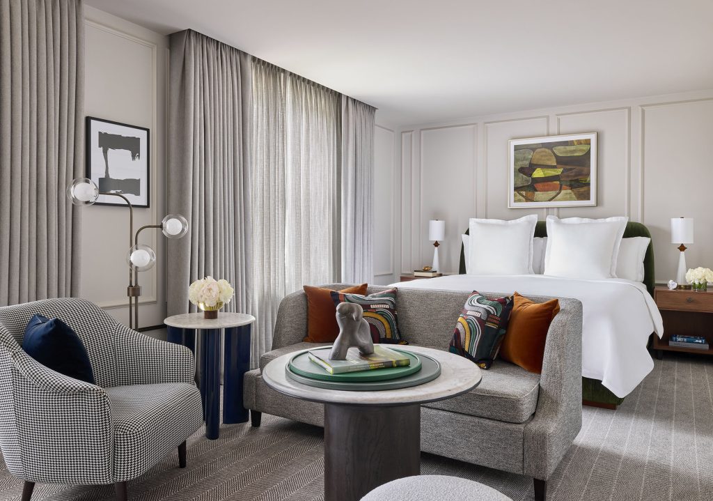 Rosewood Hotel Georgia tapped New York-based design firm Lillian Wu Studio for the redesign of its 156 rooms and suites. Reflecting the epitome of refined comfort and sophistication, the accommodations were thoughtfully crafted as a sensorial experience with details such as leather wrapped accessories, plush, tufted headboards, horn handles with bronze patina holders, and hand-blown glass fixtures. With a color palette reflecting tranquil hues juxtaposed with patterned furnishings and jewel-toned accents, the rooms and suites offer guests an atmosphere of serenity and timeless luxury. Reflecting Rosewood’s A Sense of Place® philosophy, elegant nods to the property’s singular location are woven throughout, such as silver leaf-painted glass resembling the Pacific Dogwood, the provincial flower of British Columbia, as well as works of art curated by a local gallery.