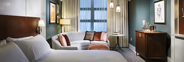 Residential design elements and rich textures decorate the hotel’s 167 rooms and 12 suites, alongside a collection of maps, travel mementos and antique décor. Oversized guest room windows allow natural sunlight to illuminate lush fabrics and Frette Italian bed linens, leather headboards and deeply hued walls adorned with notable artwork that varies from room to room.