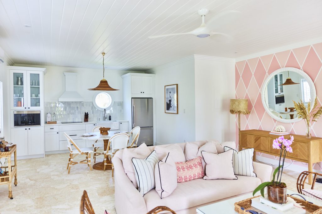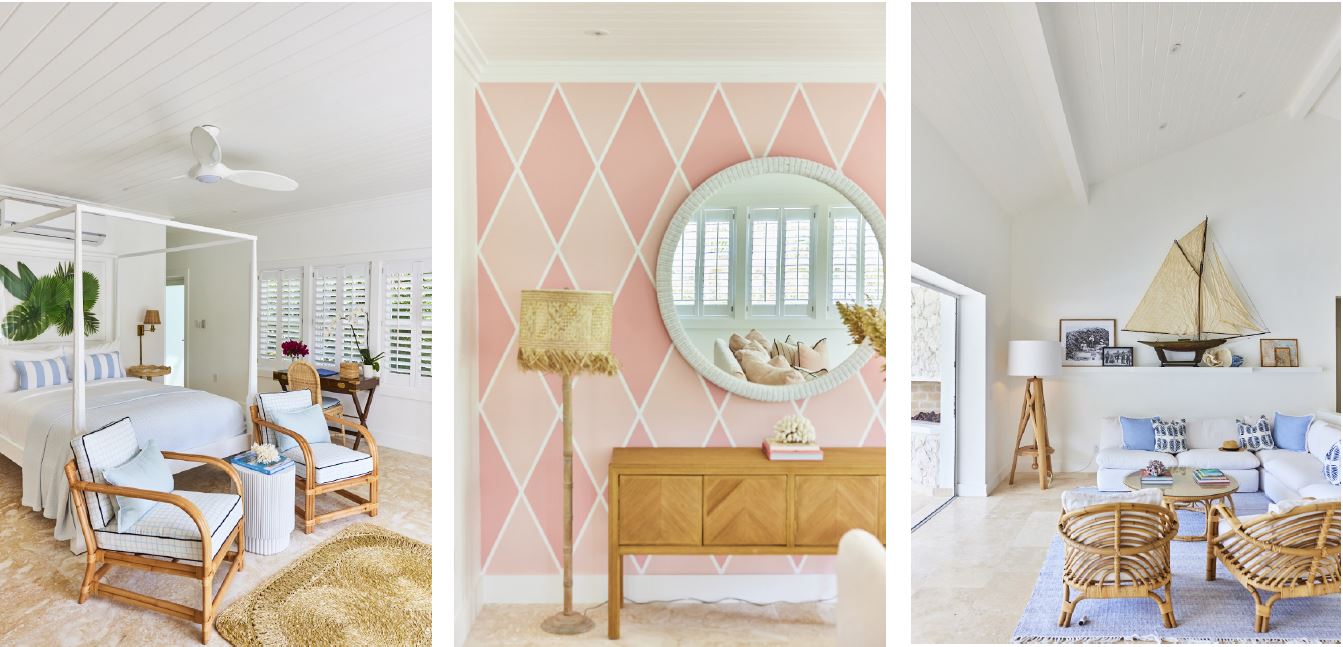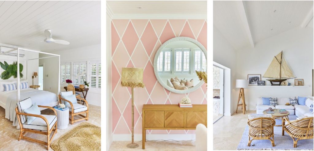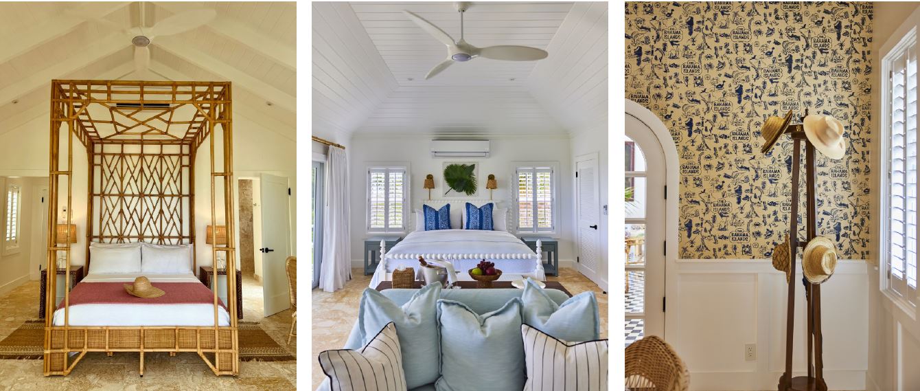 Fronting a seven-mile deserted stretch of pink-sand beach, The Potlatch Club is an oceanfront escape where breezy coastal elegance meets timeless Caribbean architecture at the reborn Potlatch Club. In all, four original buildings were saved and refurbished. The property’s original clubhouse retains historic details, such as checkered floors, which were crafted in Nassau in 1919, and classic whitewashed arches that hark to the property’s storied past, while striped awnings and pops of pastel add glamorous seaside flare. White walls, pink coral stone floors, coral stone finished bathrooms, designer furniture and original art complete the relaxed yet upscale beachy look.