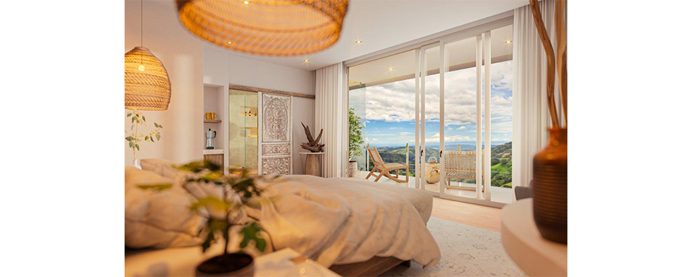 Each loft has a large bathroom with an old world door hand carved by local artisans, ample recessed lighting in the showers, open closets and under the counter and an over-the-tub chandelier. The open closet, glass shower and oversized window overlooking the Nicoya Peninsula and Pacific Ocean manifest the indoor-outdoor feel, evoking harmony with nature.