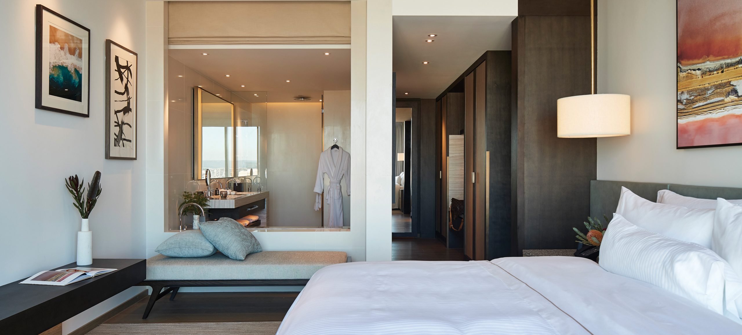 Bedrooms are generous in size, ranging from the 42 square-metre Deluxe Room to the superior 240 square-metre Presidential Suite, and feature floor-to-ceiling windows, a Heavenly Bed and a walk-in rain shower. Asymmetrical tables in living areas, subtly striated stone and landscape- inspired artwork make for a unique and memorable stay.