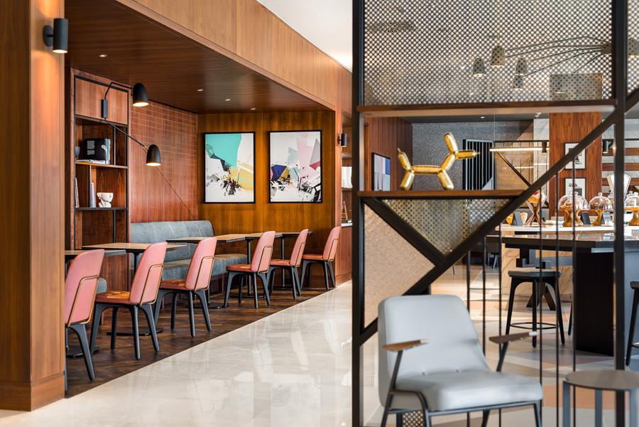 Tucked along the banks of the Danube River, the hotel overlooks some of the capital’s most iconic landmarks including the Chain Bridge and Buda Castle. The 50-year old building belongs to the Brutalist mid-twentieth style of architecture, and the designers pay homage to the concrete façade with a new stone sculptural relief in the lobby. Beyond this however, the interiors are now modern and tactile with numerous residential-style details to ensure guests feel at their ease from the moment they arrive. twenty2degrees has also introduced Marriott’s first ‘disruptive bar’ – a free-standing island bar in the lounge designed to evolve through the day, from morning coffee and pastry service, to cocktails and snacks in the evening.