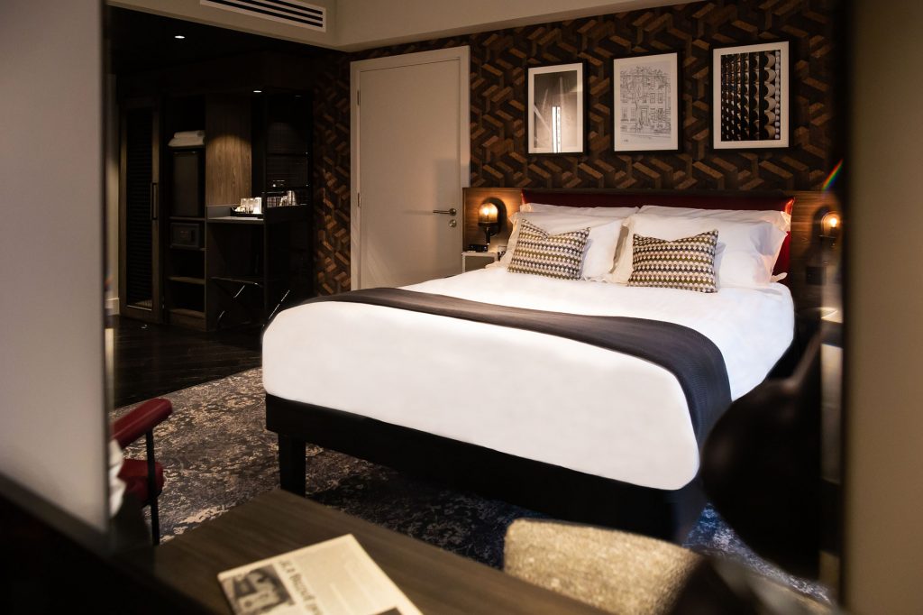 Like Hotel Brooklyn Manchester, the aesthetic of the 191 bedrooms have been inspired by Brooklyn’s loft spaces, peppered with immaculate features that favour quality and high-spec finishes, offering an atmosphere of irresistible familiarity. Beds have been upholstered in Burgundy leather, desk chairs are upholstered in soft fabrics and all rooms exhibit a feature wall inspired by the Graphic artist M.C. Escher: a mix of mathematical order and texture.