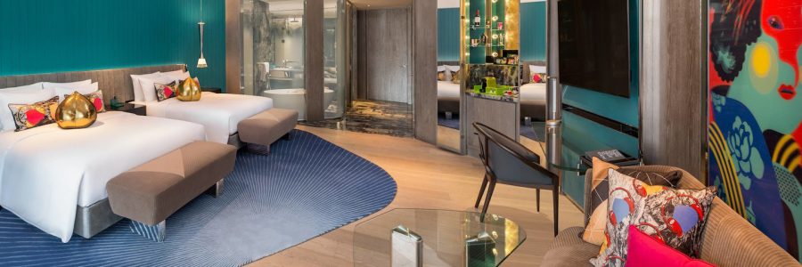 Spread over approximately 80,000 square meters, W Xi’an gives a bold first impression of the W Hotels brand, standing in the shape of a ‘W’ along with the other two buildings of the W Five Park complex. With its neon coating shining each night, W Xi-an is quickly becoming an iconic feature on the Xi’an city skyline.