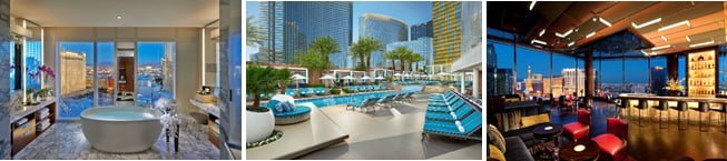 The 8th floor pool deck, a desert retreat tucked away from high-rise towers, offers a chic respite with stunning views, two exquisite pools, two whirlpools and a plunge pool. Redefining relaxation with unobtrusive service, guests can enjoy serenity in poolside cabanas.