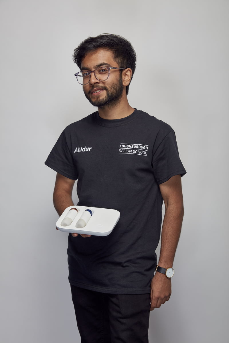 Description of work: An asthma management system that aims to help people manage their asthma better in a convenient, discreet and aesthetically pleasing way. The system consists of an environmental sensing base, two inhalers, an emergency inhaler and an app that is the main point of feedback.