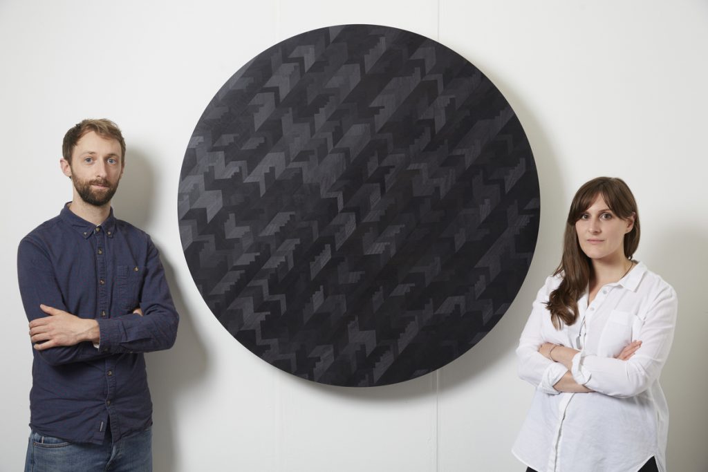 Description of work: Single coloured marquetry designs deriving from a collection of Macramé textiles, an artisanal craft which inspired the visual language and questions the value placed on workmanship. Winter and Kurth combine hand assembled marquetry with unusual materials such as solid graphite and cast-crayon.