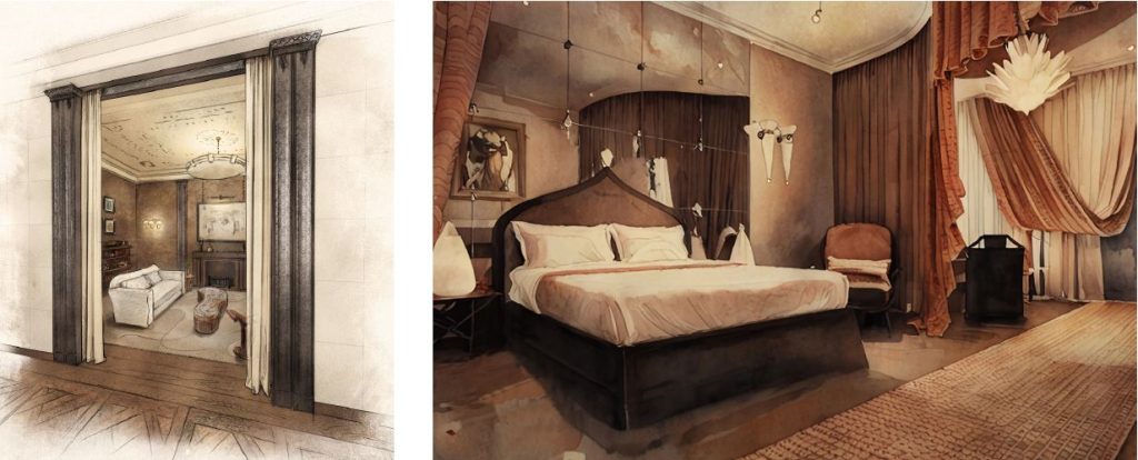 Monday 10 March, 12.30pm: Designers and room sponsors sketches reveal at the London Design Week 2025 press lunch