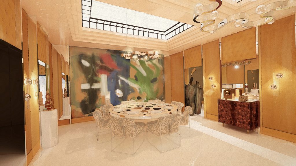 Step inside and feel your spirits soar. A massive oak leaf chandelier spirals upward and signifies the optimism and creativity fueling this collaboration. “The English oak is such a classic symbol,” Davar says. “The idea that great things come from small beginnings, that ‘mighty oaks from little acorns grow’, is very much at the heart of this project.” Inspiration from iconic artists – Cy Twombly at the Villa di Monserrato, Jean Cocteau in Villa Santo Sospir, Picasso at Château Grimaldi in Antibes – and pioneering patron Peggy Guggenheim sets the stage for a flourishing of contemporary work by makers and creators from our United in Design directory alongside Cox London’s refined creations.