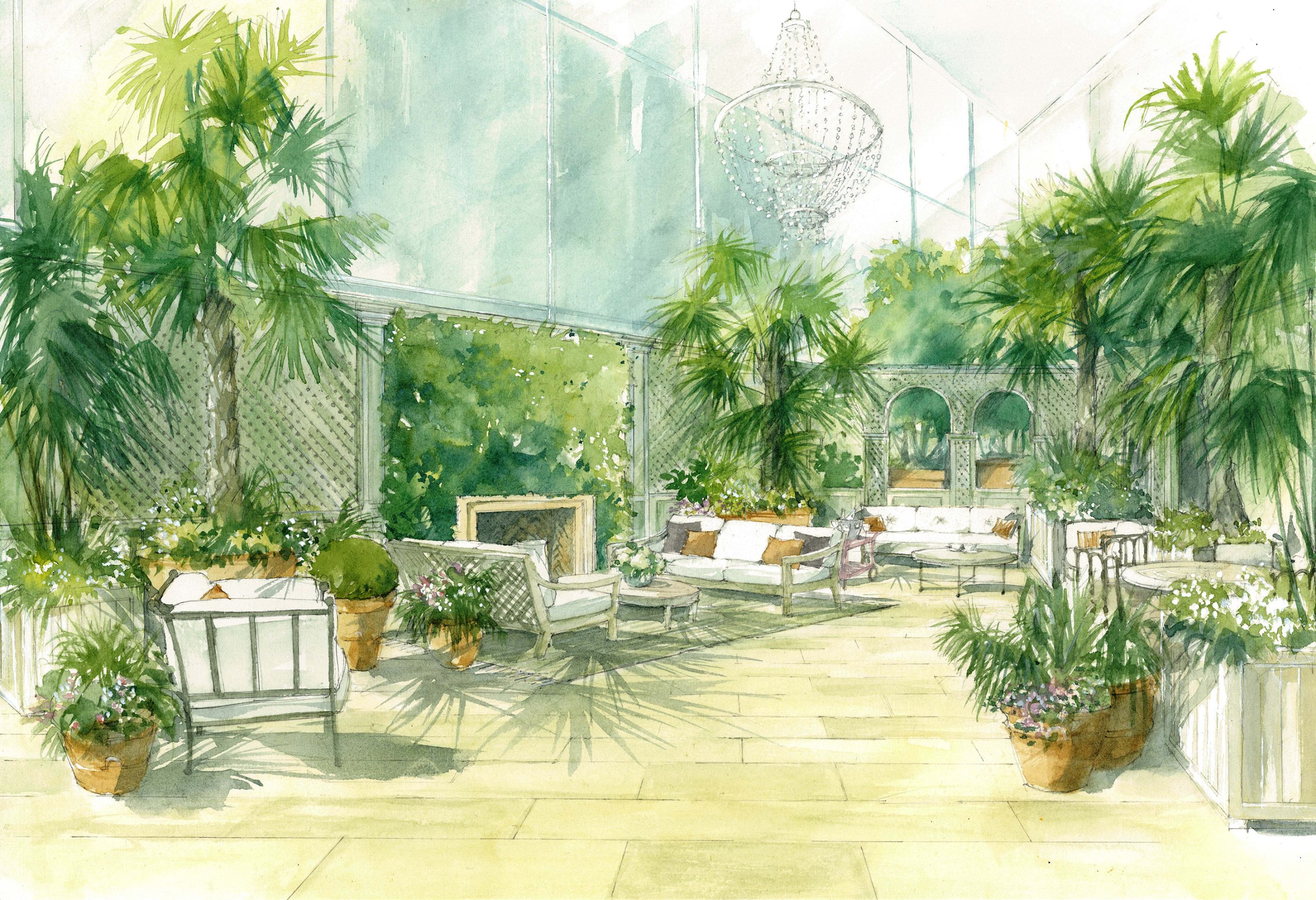 Celebrating 50 years of creating beautiful landscapes, Randle Siddeley brings all his tools to imagining a conservatory or orangery, inspired by the exotic luxury of the ‘Palm Court.’ An opulent setting filled with lush planting and surrounded by ornate trelliswork, this is a ‘sensuous haven’ where the formality of traditional interiors gives way to a more relaxed elegance. “The orangery should be a retreat – an immersive escape where one can pause, entertain and reconnect with nature,” Siddeley says. Bespoke McKinnon and Harris furnishings seamlessly complement the landscape design. Rising stars Studio Miaki are collaborating on style, introducing accents of colour and pattern with a sense of playfulness. This is a gathering spot that exudes escapism – perfect for entertaining, indulging in the traditions of high tea, or sipping a signature cocktail—perhaps even two!