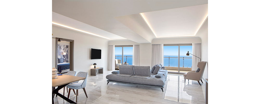 Ajul Luxury Hotel & Spa Resort, Greece. Above: Reception – Lobby. Top: Executive Suite Sea View