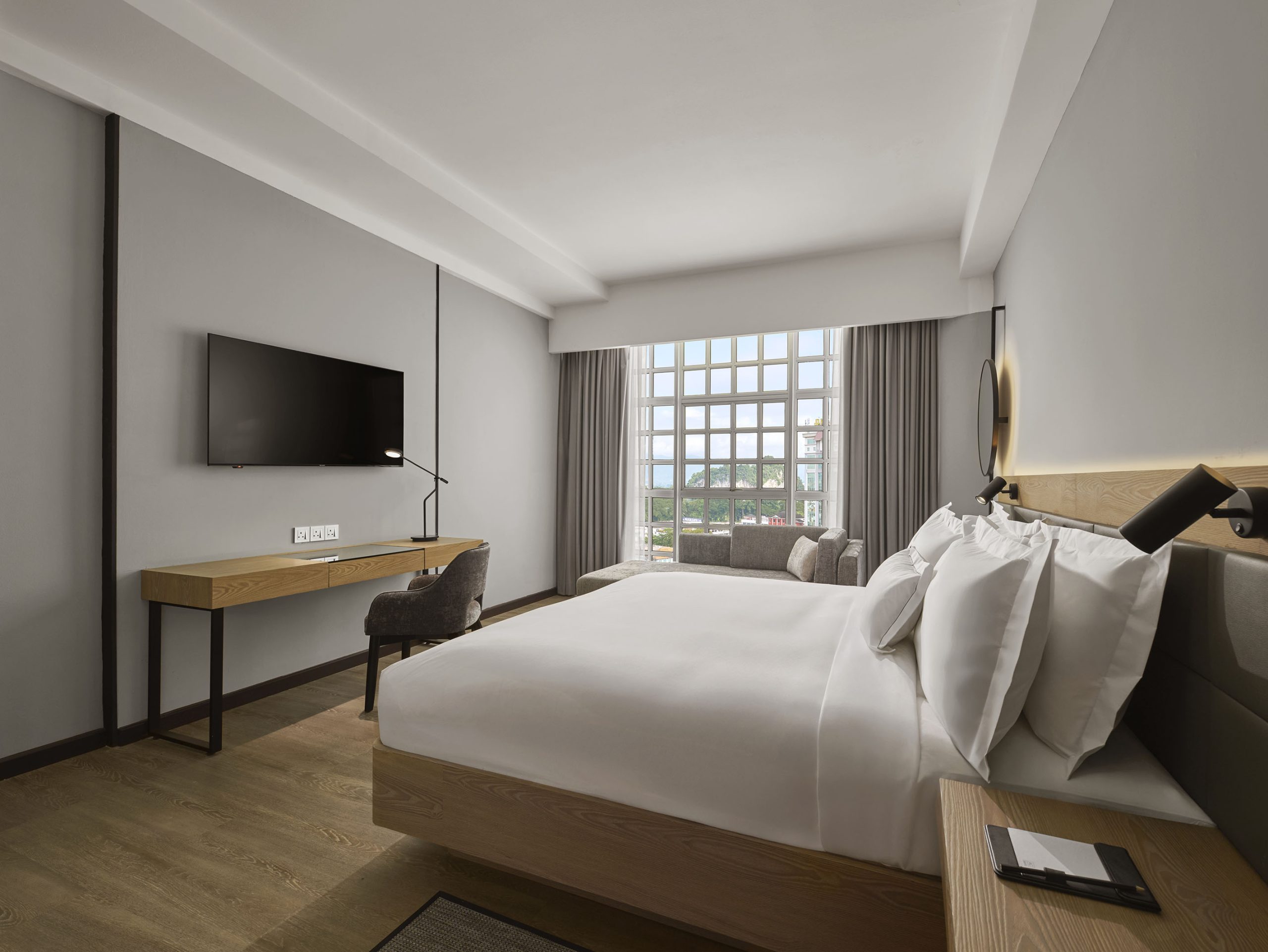 AC Hotel Ipoh reflects a European-inspired design philosophy, offering sleek accommodations and thoughtfully curated spaces that appeal equally to business travellers and leisure seekers. The 291 guest rooms exemplify refined minimalism, where clean lines, uncluttered spaces, and purposeful amenities create serene sanctuaries. Ergonomic workstations and a soothing neutral palette ensure seamless transitions between productivity and relaxation, while subtle design nods to local heritage foster a genuine sense of place.