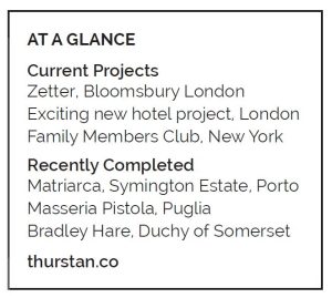 Thurstan was launched in 2018. “We’re not large – I try to keep the team at about 19 or 20 as I like to be involved in all the projects. There’s only so much information my brain can hold, but it needs to be constantly active. I’m told I have a very good memory when it comes to the finite details within those projects. I don’t make notes – there’s no point,” he shrugs, “It’s all pictorial.”