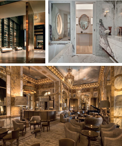 Clockwise from above left: Rosewood Beijing; Hotel de Crillon; Rosewood Hotel de Crillon