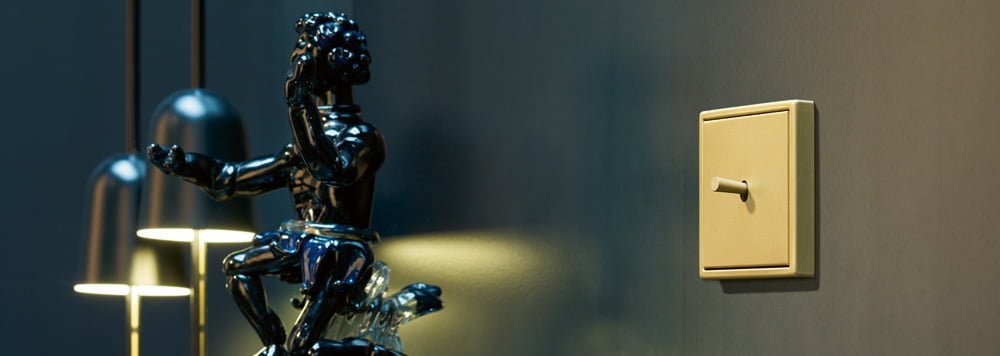 A reinterpretation of a classic design, the LS 1912 toggle switch has been developed in a modular fashion so that no screws are visible, neither in the cover plate that is flush with the bezel, nor in the switch itself. The distinct toggle stands out as a stylistic feature, providing a special tactile experience. Precisely matching the respective material, the toggle is available in a cylindrical, conical and cubic form. Chrome-plated brass is used as the basic material for this new switch. The LS 1912 design with a chrome finish features a cubic toggle. For the Brass Classic, Stainless Steel, Aluminium and Dark variants there is a choice between a conical and a cylindrical toggle. Each brass switch is unique, the surface being hand-polished and finished. This switch is synonymous with contemporary design for both home and contract interiors: the LS 1912 can be combined with all 1-gang to 5-gang bezels from the LS range (LS 990, LS Design, LS Plus and LS Zero).