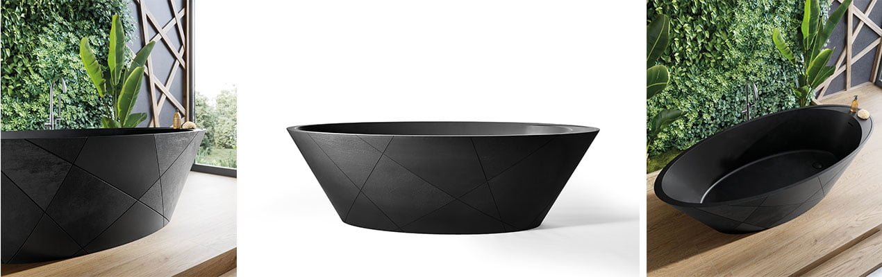 Following on from the success of the stunning award-winning Smart Quiz shower tray, Acquabella the pioneering bathroom company has come to market with a brand-new statement bath tub, the Opal Quiz. Combining truly avant-garde geometric design with the new texture and a beautiful sculptured shape.