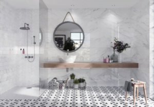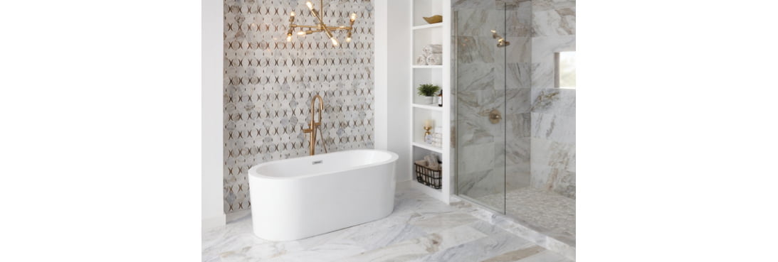 Beautiful, elegant, timeless — words that define white marble. Ideology™ brings the history of white marble and contemporary design together. Updated larger sizes and fascinating geometric mosaic and decorative tile options let designers insert marble veining into today’s designs. These glazed porcelain products are available in three colors, including Vein-Cut Calacatta, Lasa, and Carrara.