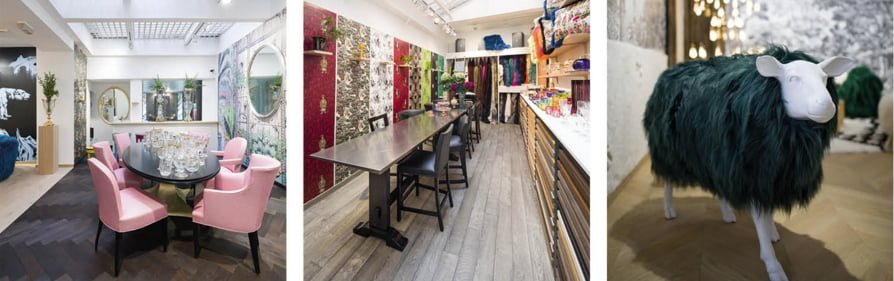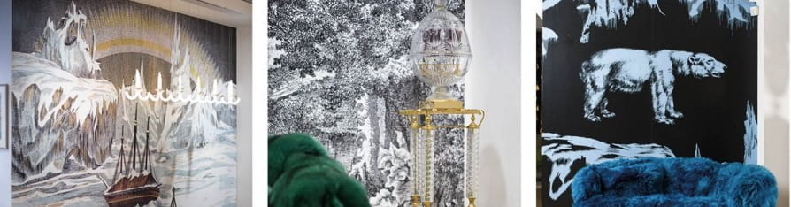 Their projects have a beautiful exhibition space in the Marais, Paris. The different rooms display incredible bespoke creations of furniture, parquet floors, upholstery fabrics, decorative skins and furs, tableware and wall decoration for hotels, palaces and private residences.