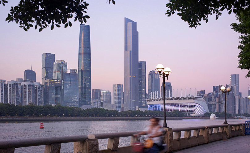 Currently the seventh tallest building in the world, the Chow Tai Fook Finance Centre is a 530-metre tall mixed-use skyscraper, boasting the world’s highest five-star hotel and world’s fastest elevators, running at an incredible 76kph. Located in the Tianhe District of Guangzhou, the building forms a trio of tall structures with the 439-metre tall IFC in one direction and the 604-metre tall Canton Tower in another.
