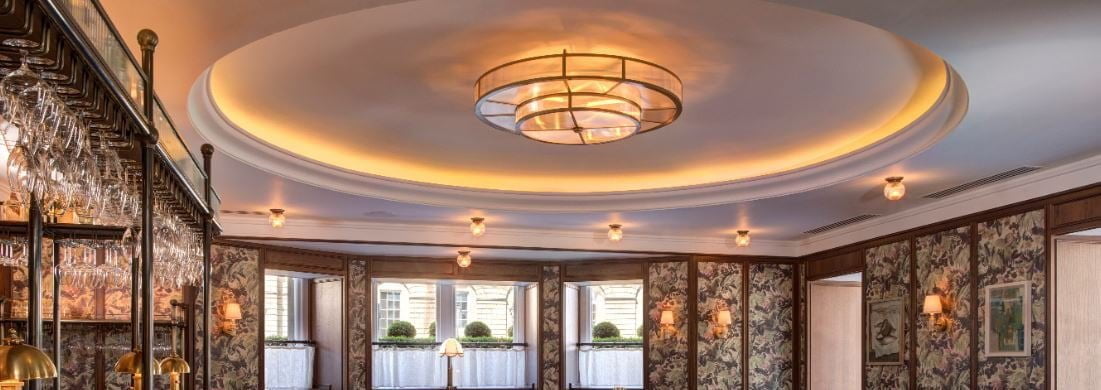 Working to a Martin Brudnizki Design Studio design, bespoke lighting specialist Dernier & Hamlyn produced a stunning two-tier chandelier almost 1.5 m across that forms a focal point in Brasserie Prince by Alain Roux.