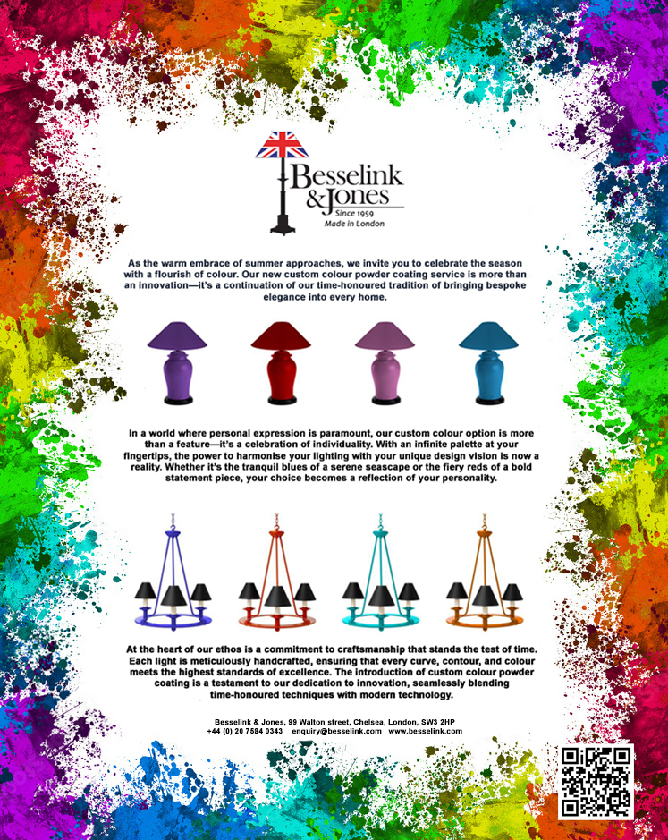 In a world where personal expression is paramount, Besselink & Jones’ custom colour option is more than a feature—it’s a celebration of individuality. With an infinite palette at your fingertips, the power to harmonise your lighting with your unique design vision is now a reality. Whether it’s the tranquil blues of a serene seascape or the fiery reds of a bold statement piece, your choice becomes a reflection of your personality.
