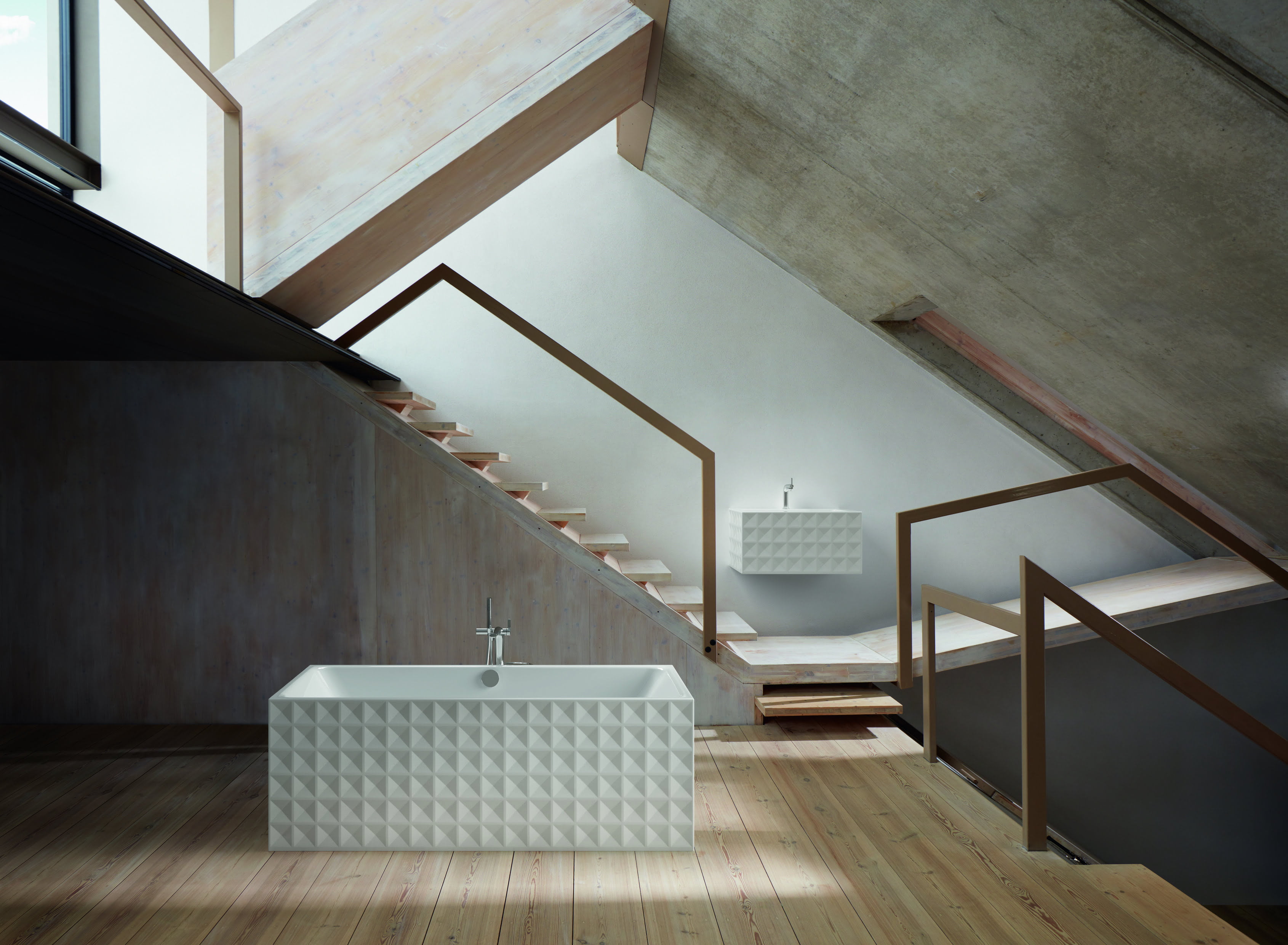 Steel-enamel bathroom specialist, Bette, is launching two contrasting bath designs, both with an underlying architectural, pared-down and comfortable shape, but with very different styles and design. The built-in BetteLoft bath features an extremely slim rim and is suitable for flush installation, while the BetteLoft Ornament is a large free-standing bath with statement geometric embossing. Matching washbasins, also in glazed titanium steel, are available for both.